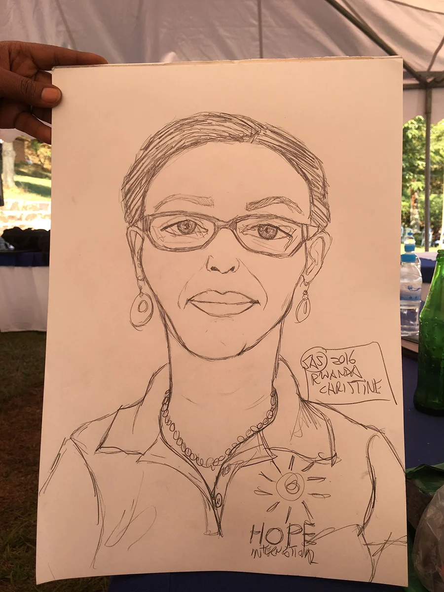 These sketches below are of survivors of the Rwandan genocide of 1994. Many of them are helped by Hope International by starting businesses through micro-financing. 20% of the Rwandan population has been significantly helped by Hope's micro-financing programs. You would not believe it, $20 is enough to set someone up to start a viable business.